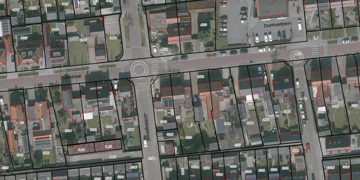 Het perceel waarop Duinstraat 32 staat heeft een oppervlakte van 508 m². Dit is een groot perceel. De perceeloppervlakte wordt geregistreerd door het Kadaster. Gedetailleerde informatie over de maten van dit perceel kunt u vinden in het rapport Kadastrale kaart met maatvoering van Duinstraat 32.
