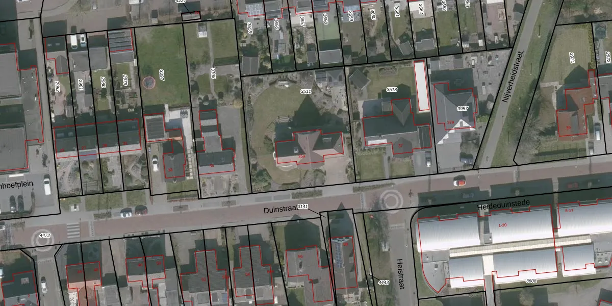 Het perceel waarop Duinstraat 35-a staat heeft een oppervlakte van 1304 m². Dit is een zeer groot perceel. De perceeloppervlakte wordt geregistreerd door het Kadaster. Gedetailleerde informatie over de maten van dit perceel kunt u vinden in het rapport Kadastrale kaart met maatvoering van Duinstraat 35-a.