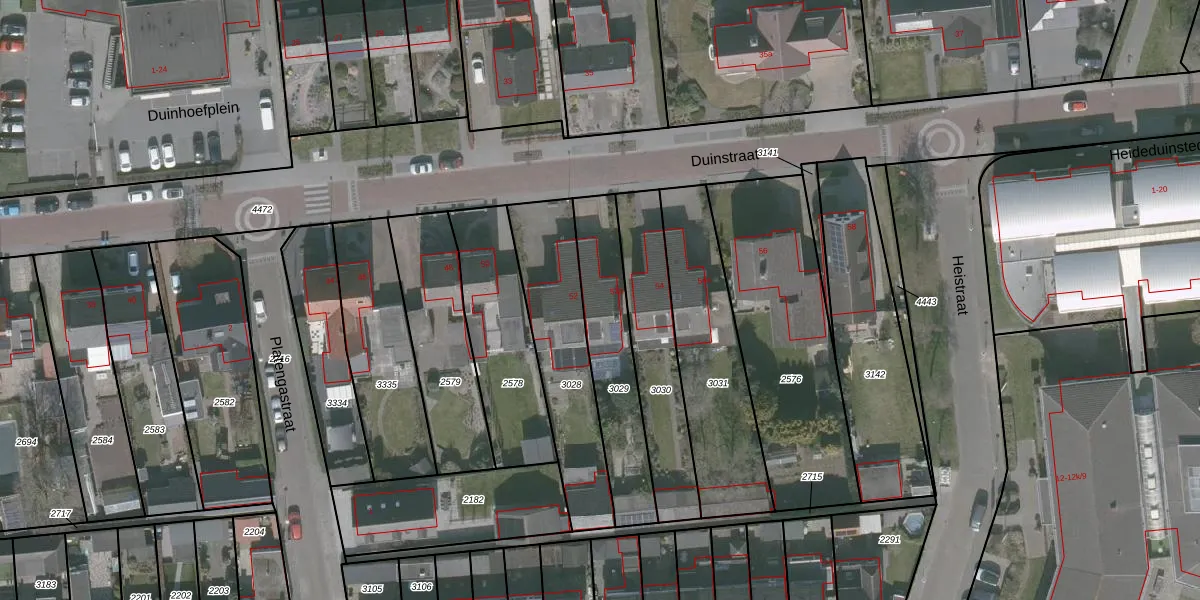 Gebruik de zoekbalk of klik op een perceel voor informatie over de adressen binnen dit perceel.