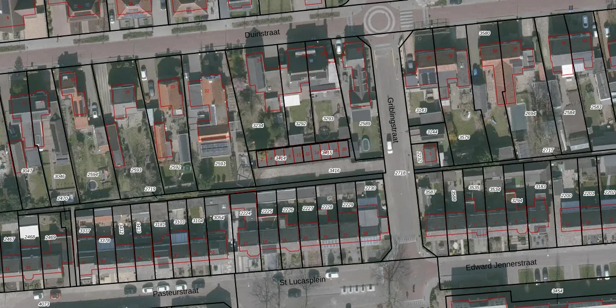 Griblingstraat 12 is gelegen op kadastraal perceel WDT00B3415. Deze kadastrale aanduiding is uniek en wordt gebruikt door het Kadaster om eigendomsrechten en andere zakelijke rechten vast te leggen. Het perceel maakt onderdeel uit van de kadastrale gemeente Woensdrecht.