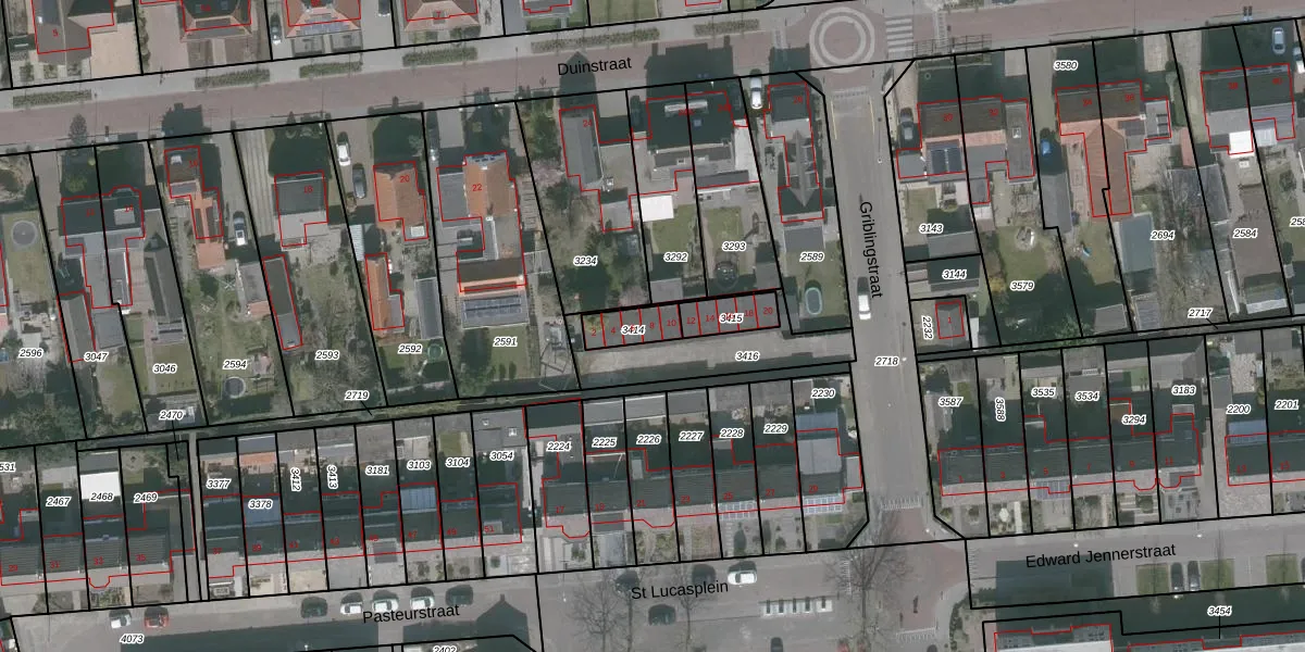 Griblingstraat 8 is gelegen op kadastraal perceel WDT00B3414. Deze kadastrale aanduiding is uniek en wordt gebruikt door het Kadaster om eigendomsrechten en andere zakelijke rechten vast te leggen. Het perceel maakt onderdeel uit van de kadastrale gemeente Woensdrecht.