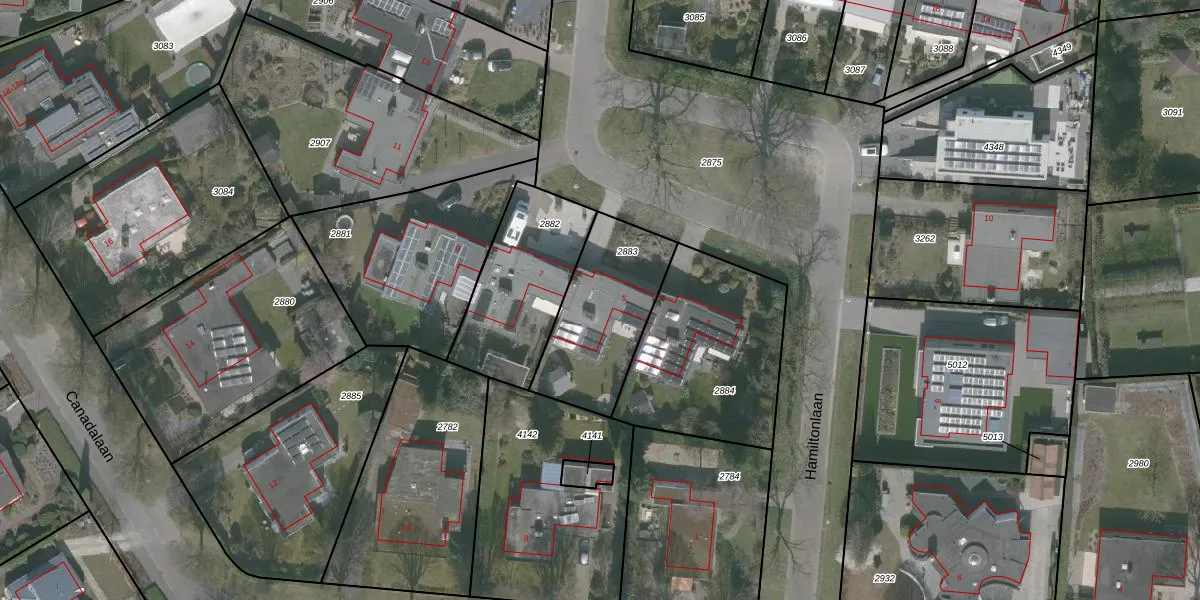 Gebruik de zoekbalk of klik op een perceel voor informatie over de adressen binnen dit perceel.