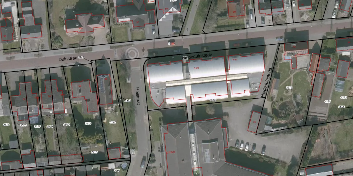 Het perceel waarop Heideduinstede 10 staat heeft een oppervlakte van 2165 m². Dit is een zeer groot perceel. De perceeloppervlakte wordt geregistreerd door het Kadaster. Gedetailleerde informatie over de maten van dit perceel kunt u vinden in het rapport Kadastrale kaart met maatvoering van Heideduinstede 10.
