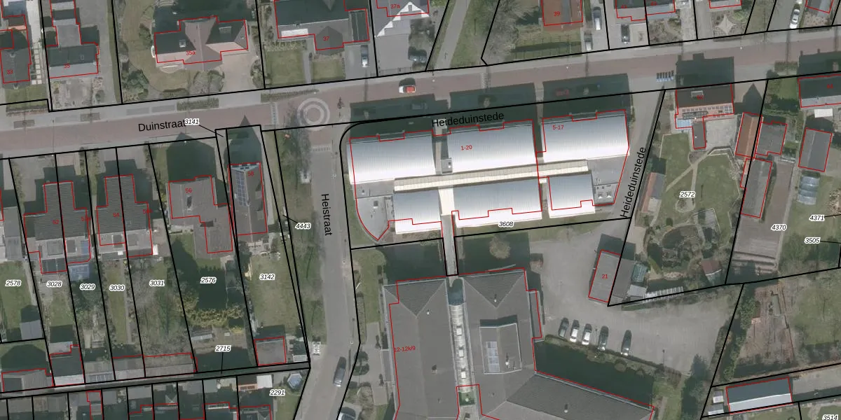 Het perceel waarop Heideduinstede 20 staat heeft een oppervlakte van 2165 m². Dit is een zeer groot perceel. De perceeloppervlakte wordt geregistreerd door het Kadaster. Gedetailleerde informatie over de maten van dit perceel kunt u vinden in het rapport Kadastrale kaart met maatvoering van Heideduinstede 20.