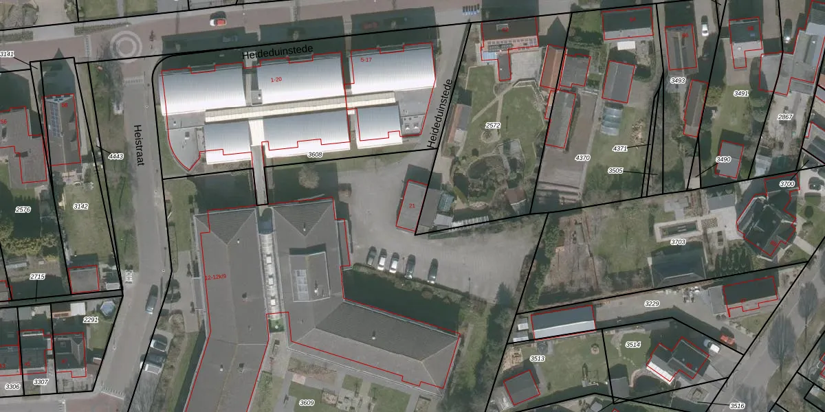 Het perceel waarop Heideduinstede 21 staat heeft een oppervlakte van 6300 m². Dit is een zeer groot perceel. De perceeloppervlakte wordt geregistreerd door het Kadaster. Gedetailleerde informatie over de maten van dit perceel kunt u vinden in het rapport Kadastrale kaart met maatvoering van Heideduinstede 21.