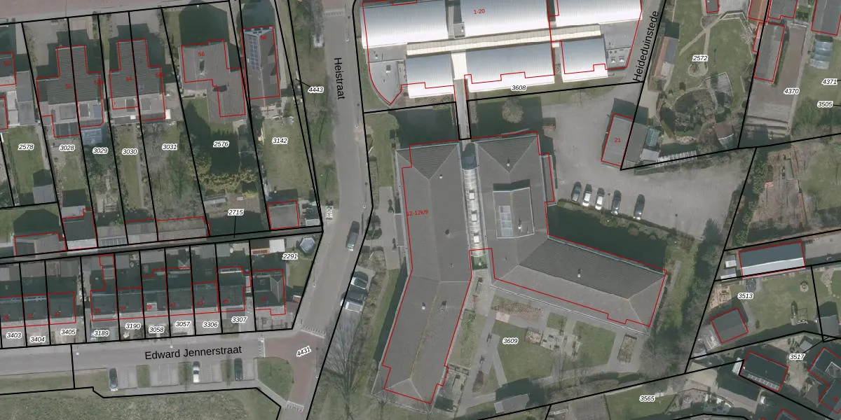 Het perceel waarop Heistraat 12-k-44 staat heeft een oppervlakte van 6300 m². Dit is een zeer groot perceel. De perceeloppervlakte wordt geregistreerd door het Kadaster. Gedetailleerde informatie over de maten van dit perceel kunt u vinden in het rapport Kadastrale kaart met maatvoering van Heistraat 12-k-44.