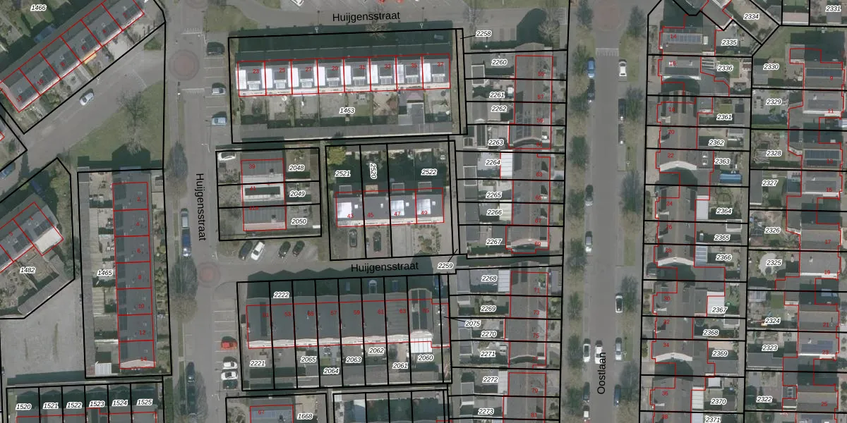 Het perceel waarop Huijgensstraat 49 staat heeft een oppervlakte van 391 m². Dit is een groot perceel. De perceeloppervlakte wordt geregistreerd door het Kadaster. Gedetailleerde informatie over de maten van dit perceel kunt u vinden in het rapport Kadastrale kaart met maatvoering van Huijgensstraat 49.