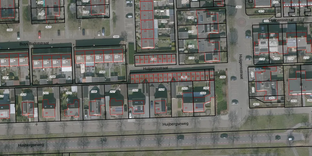 Het perceel waarop Huijgensstraat 68 staat heeft een oppervlakte van 336 m². Dit is een groot perceel. De perceeloppervlakte wordt geregistreerd door het Kadaster. Gedetailleerde informatie over de maten van dit perceel kunt u vinden in het rapport Kadastrale kaart met maatvoering van Huijgensstraat 68.