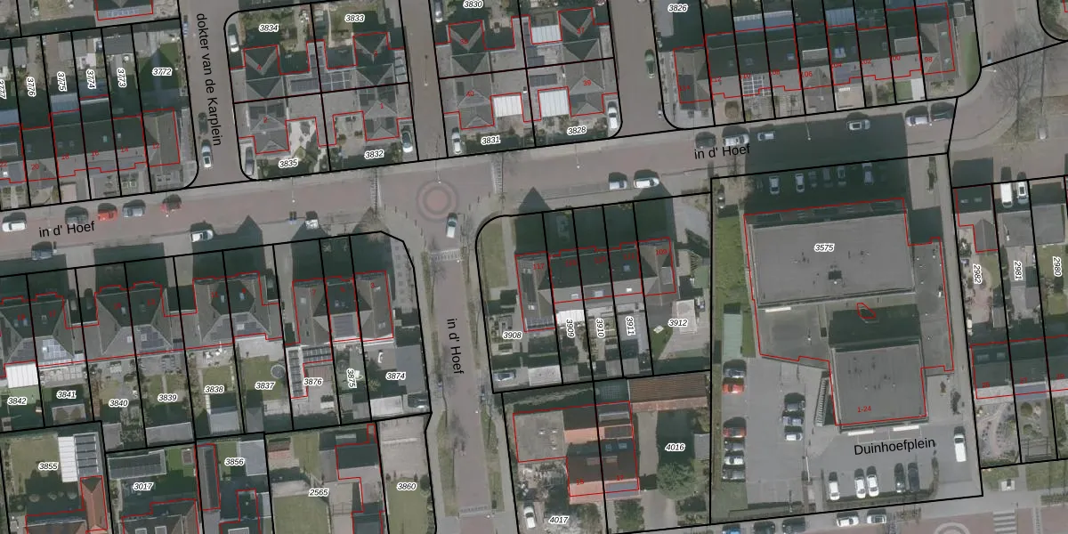 Gebruik de zoekbalk of klik op een perceel voor informatie over de adressen binnen dit perceel.