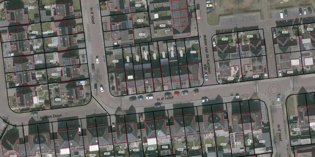 Gebruik de zoekbalk of klik op een perceel voor informatie over de adressen binnen dit perceel.