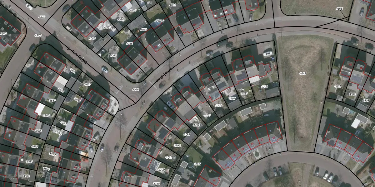 Gebruik de zoekbalk of klik op een perceel voor informatie over de adressen binnen dit perceel.