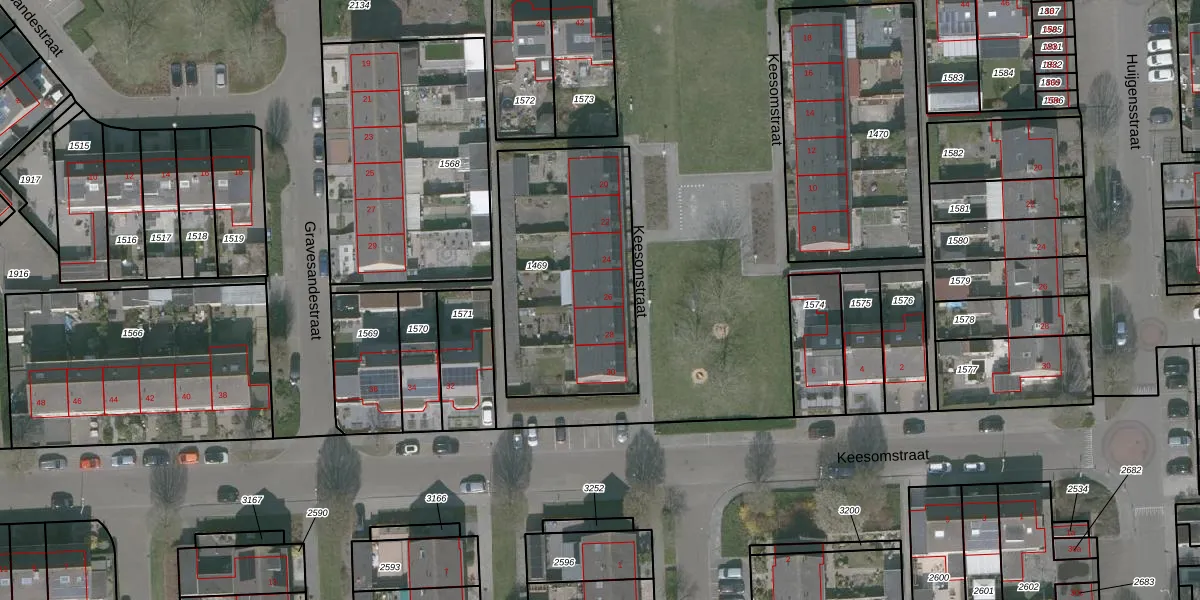 Het perceel waarop Keesomstraat 26 staat heeft een oppervlakte van 911 m². Dit is een groot perceel. De perceeloppervlakte wordt geregistreerd door het Kadaster. Gedetailleerde informatie over de maten van dit perceel kunt u vinden in het rapport Kadastrale kaart met maatvoering van Keesomstraat 26.