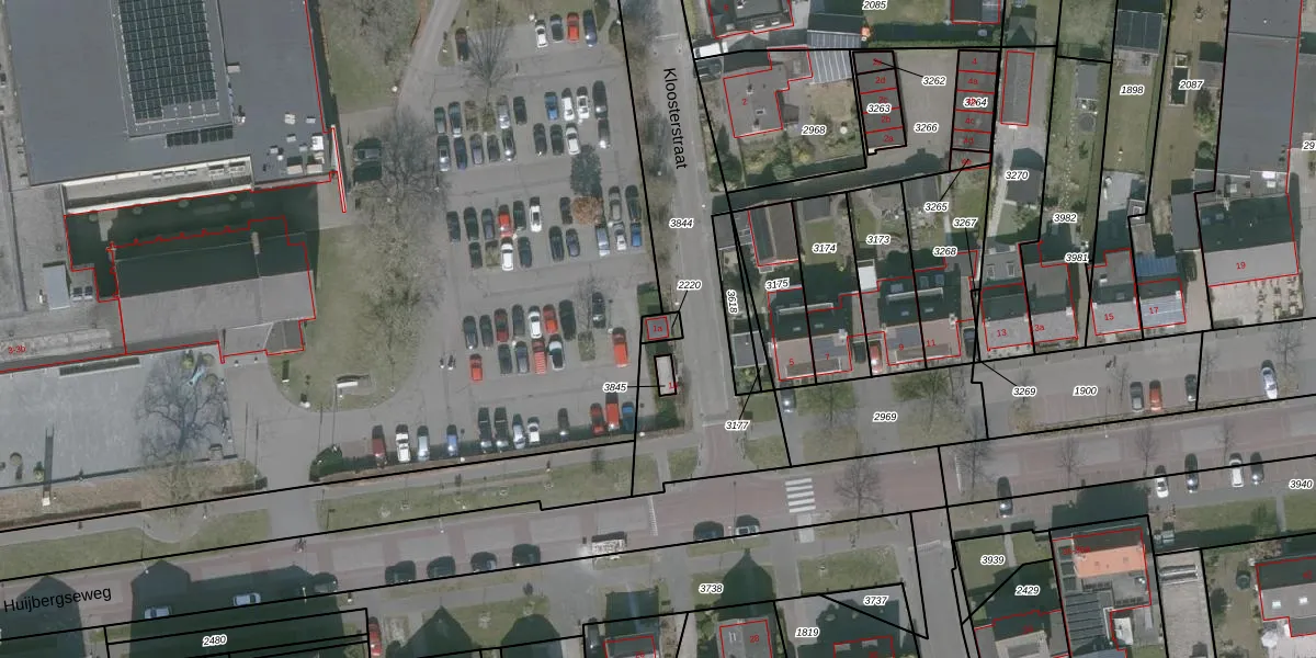 Gebruik de zoekbalk of klik op een perceel voor informatie over de adressen binnen dit perceel.