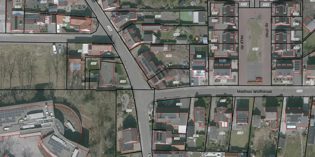 Gebruik de zoekbalk of klik op een perceel voor informatie over de adressen binnen dit perceel.