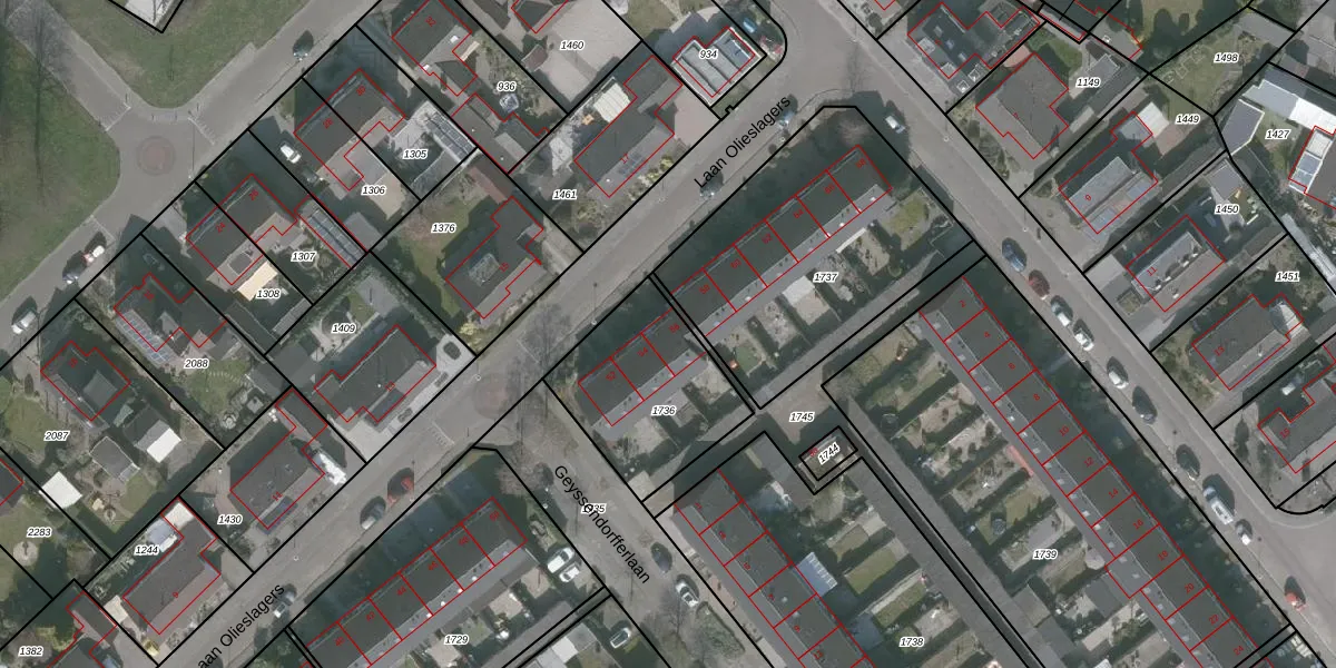 Het perceel waarop Laan Olieslagers 56 staat heeft een oppervlakte van 539 m². Dit is een groot perceel. De perceeloppervlakte wordt geregistreerd door het Kadaster. Gedetailleerde informatie over de maten van dit perceel kunt u vinden in het rapport Kadastrale kaart met maatvoering van Laan Olieslagers 56.