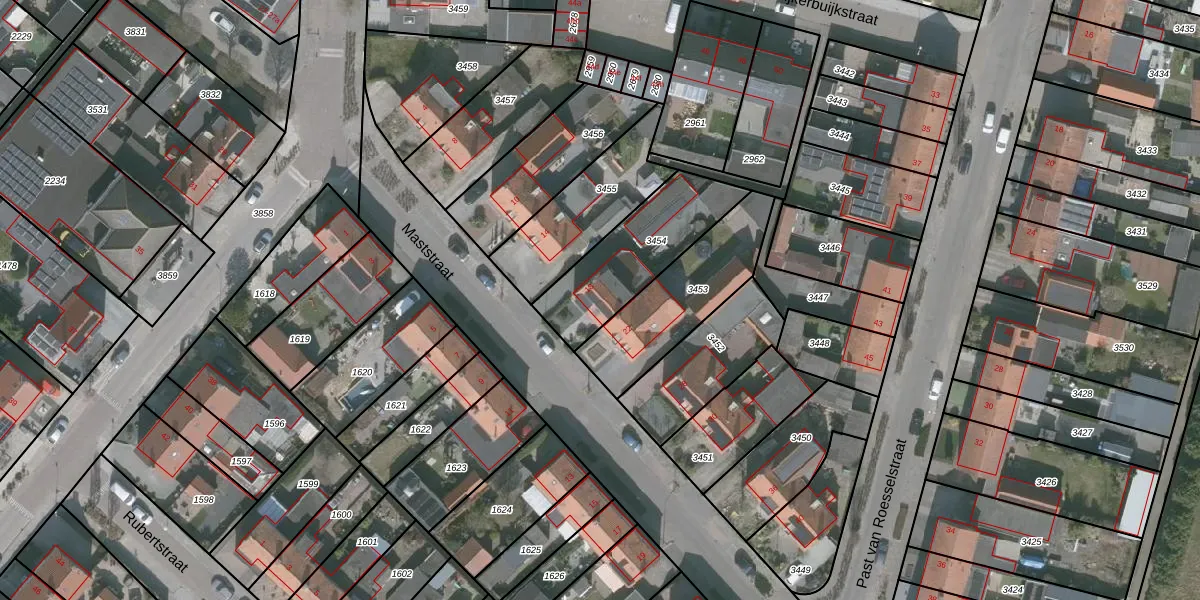 Maststraat 18 is gelegen op kadastraal perceel WDT00D3454. Deze kadastrale aanduiding is uniek en wordt gebruikt door het Kadaster om eigendomsrechten en andere zakelijke rechten vast te leggen. Het perceel maakt onderdeel uit van de kadastrale gemeente Woensdrecht.
