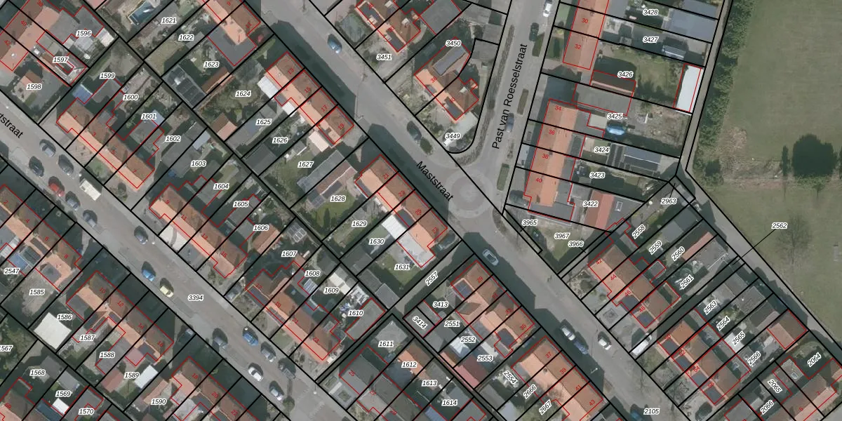 Maststraat 25 is gelegen op kadastraal perceel WDT00D1630. Deze kadastrale aanduiding is uniek en wordt gebruikt door het Kadaster om eigendomsrechten en andere zakelijke rechten vast te leggen. Het perceel maakt onderdeel uit van de kadastrale gemeente Woensdrecht.