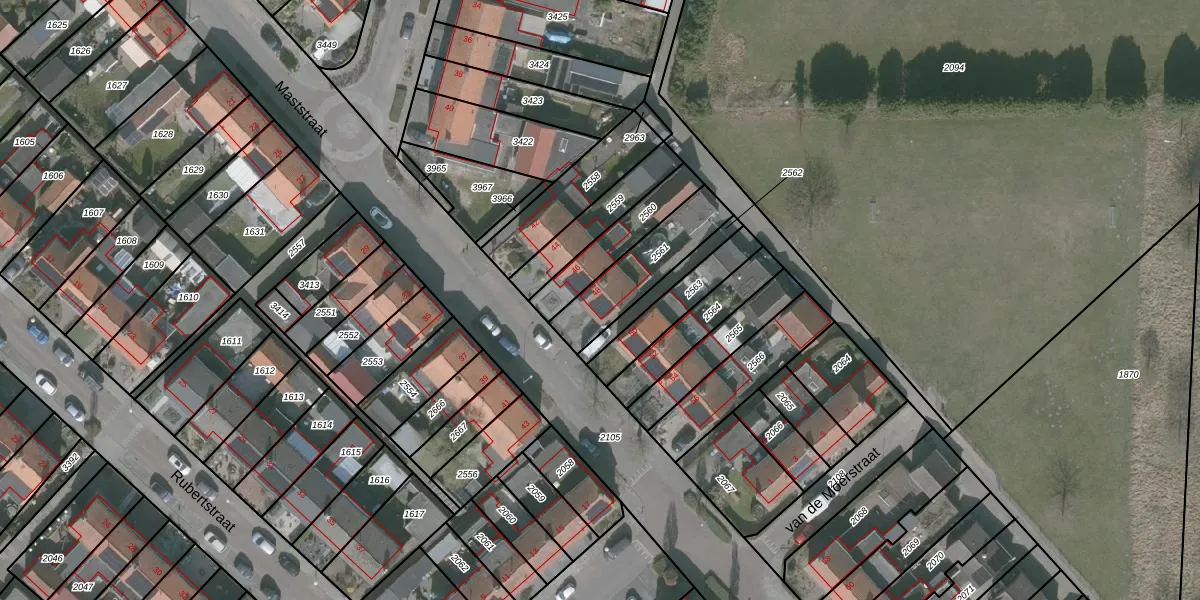 Gebruik de zoekbalk of klik op een perceel voor informatie over de adressen binnen dit perceel.