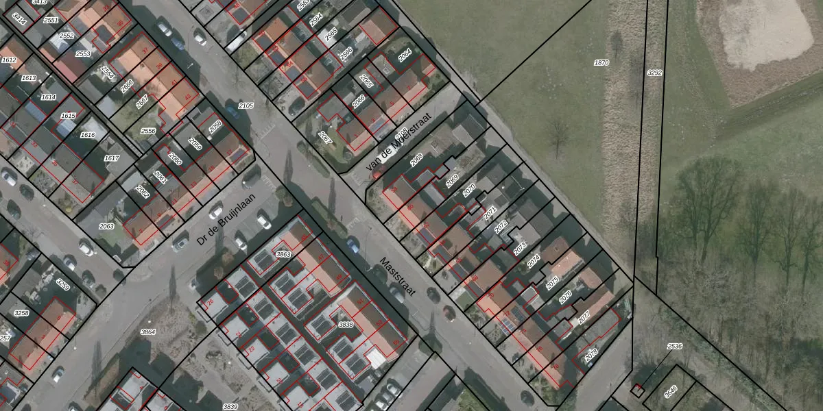 Gebruik de zoekbalk of klik op een perceel voor informatie over de adressen binnen dit perceel.