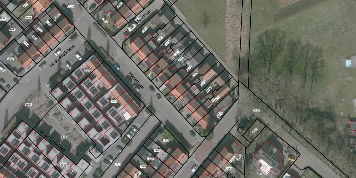Maststraat 70 is gelegen op kadastraal perceel WDT00D2074. Deze kadastrale aanduiding is uniek en wordt gebruikt door het Kadaster om eigendomsrechten en andere zakelijke rechten vast te leggen. Het perceel maakt onderdeel uit van de kadastrale gemeente Woensdrecht.