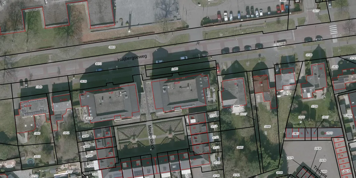 Het perceel waarop Meulenblock 15 staat heeft een oppervlakte van 1929 m². Dit is een zeer groot perceel. De perceeloppervlakte wordt geregistreerd door het Kadaster. Gedetailleerde informatie over de maten van dit perceel kunt u vinden in het rapport Kadastrale kaart met maatvoering van Meulenblock 15.