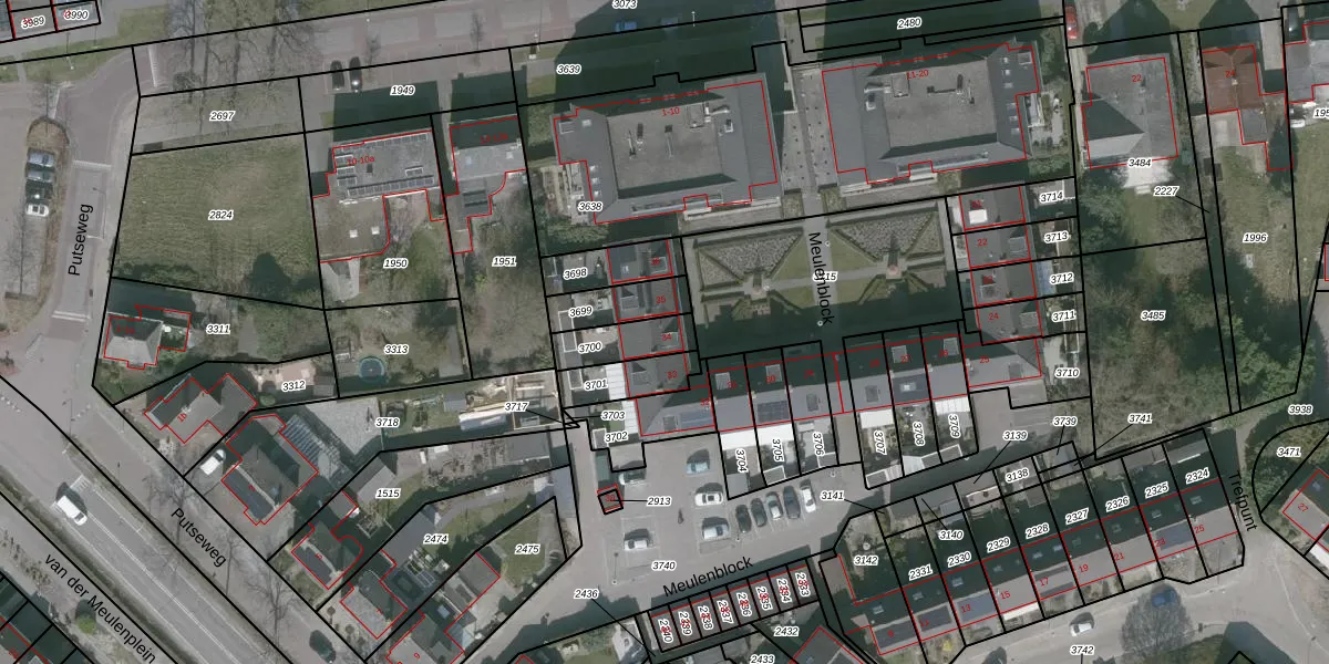 Meulenblock 34 is gelegen op kadastraal perceel WDT00D3700. Deze kadastrale aanduiding is uniek en wordt gebruikt door het Kadaster om eigendomsrechten en andere zakelijke rechten vast te leggen. Het perceel maakt onderdeel uit van de kadastrale gemeente Woensdrecht.