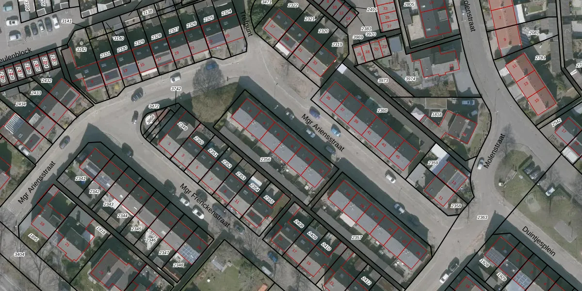 Het perceel waarop Mgr Ariensstraat 8 staat heeft een oppervlakte van 716 m². Dit is een groot perceel. De perceeloppervlakte wordt geregistreerd door het Kadaster. Gedetailleerde informatie over de maten van dit perceel kunt u vinden in het rapport Kadastrale kaart met maatvoering van Mgr Ariensstraat 8.