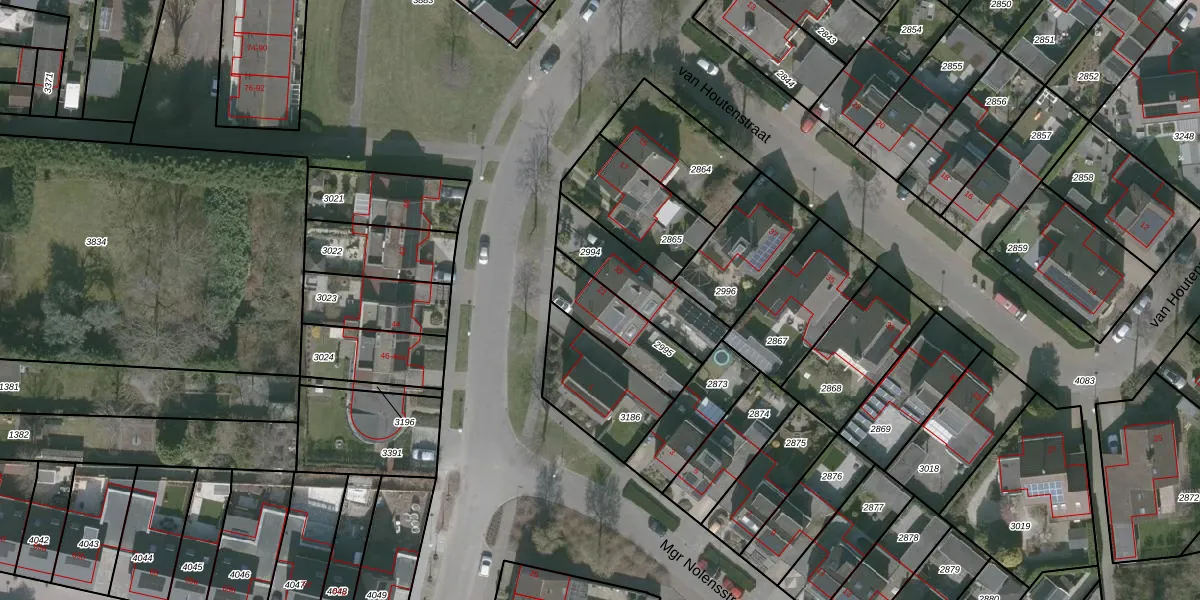 Het perceel waarop Mgr Poelsstraat 21 staat heeft een oppervlakte van 218 m². Dit is een middelgroot perceel. De perceeloppervlakte wordt geregistreerd door het Kadaster. Gedetailleerde informatie over de maten van dit perceel kunt u vinden in het rapport Kadastrale kaart met maatvoering van Mgr Poelsstraat 21.