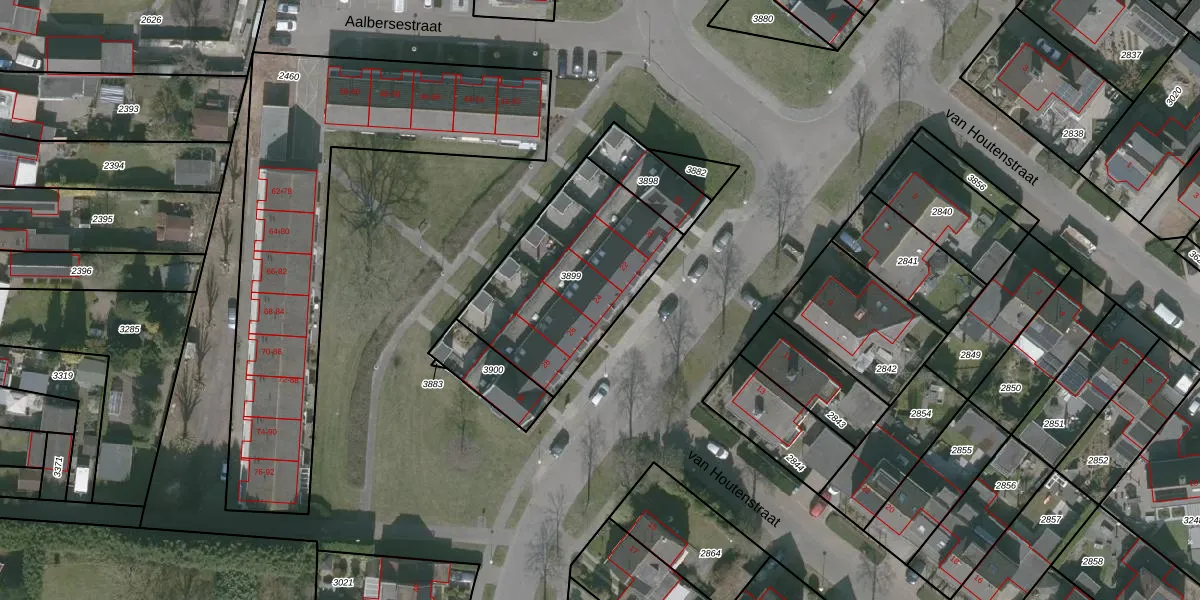 Het perceel waarop Mgr Poelsstraat 24 staat heeft een oppervlakte van 726 m². Dit is een groot perceel. De perceeloppervlakte wordt geregistreerd door het Kadaster. Gedetailleerde informatie over de maten van dit perceel kunt u vinden in het rapport Kadastrale kaart met maatvoering van Mgr Poelsstraat 24.