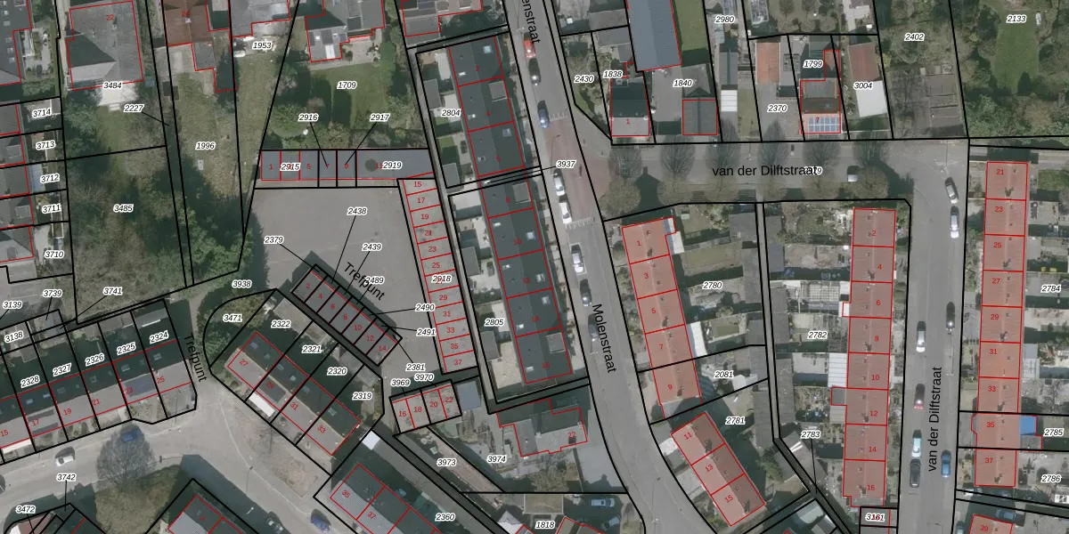 Het perceel waarop Molenstraat 12 staat heeft een oppervlakte van 718 m². Dit is een groot perceel. De perceeloppervlakte wordt geregistreerd door het Kadaster. Gedetailleerde informatie over de maten van dit perceel kunt u vinden in het rapport Kadastrale kaart met maatvoering van Molenstraat 12.