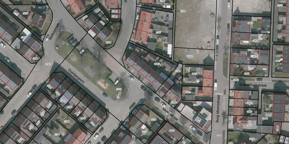 Molenstraat 27 is gelegen op kadastraal perceel WDT00D2387. Deze kadastrale aanduiding is uniek en wordt gebruikt door het Kadaster om eigendomsrechten en andere zakelijke rechten vast te leggen. Het perceel maakt onderdeel uit van de kadastrale gemeente Woensdrecht.