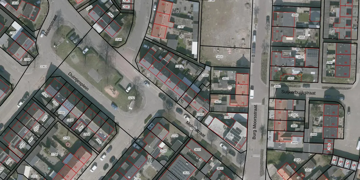 Molenstraat 31 is gelegen op kadastraal perceel WDT00D2387. Deze kadastrale aanduiding is uniek en wordt gebruikt door het Kadaster om eigendomsrechten en andere zakelijke rechten vast te leggen. Het perceel maakt onderdeel uit van de kadastrale gemeente Woensdrecht.