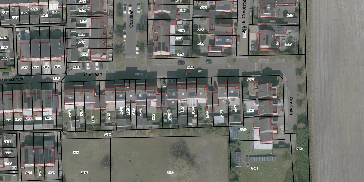 Oostlaan 105 is gelegen op kadastraal perceel WDT00C2383. Deze kadastrale aanduiding is uniek en wordt gebruikt door het Kadaster om eigendomsrechten en andere zakelijke rechten vast te leggen. Het perceel maakt onderdeel uit van de kadastrale gemeente Woensdrecht.