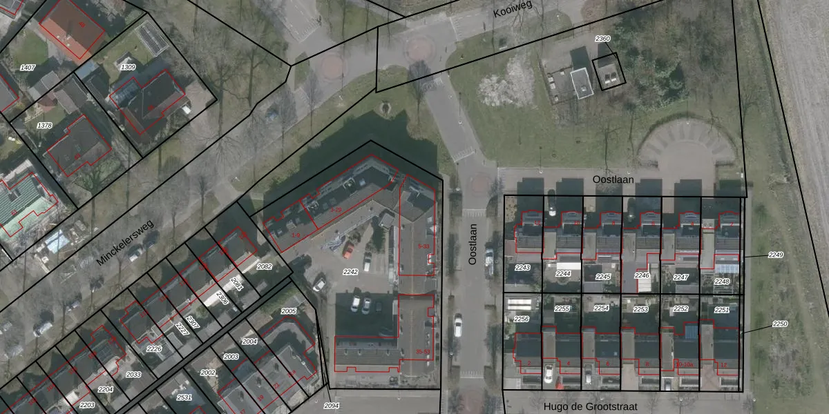 Het perceel waarop Oostlaan 23 staat heeft een oppervlakte van 1911 m². Dit is een zeer groot perceel. De perceeloppervlakte wordt geregistreerd door het Kadaster. Gedetailleerde informatie over de maten van dit perceel kunt u vinden in het rapport Kadastrale kaart met maatvoering van Oostlaan 23.
