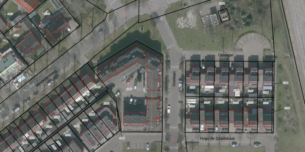 Het perceel waarop Oostlaan 33 staat heeft een oppervlakte van 1911 m². Dit is een zeer groot perceel. De perceeloppervlakte wordt geregistreerd door het Kadaster. Gedetailleerde informatie over de maten van dit perceel kunt u vinden in het rapport Kadastrale kaart met maatvoering van Oostlaan 33.