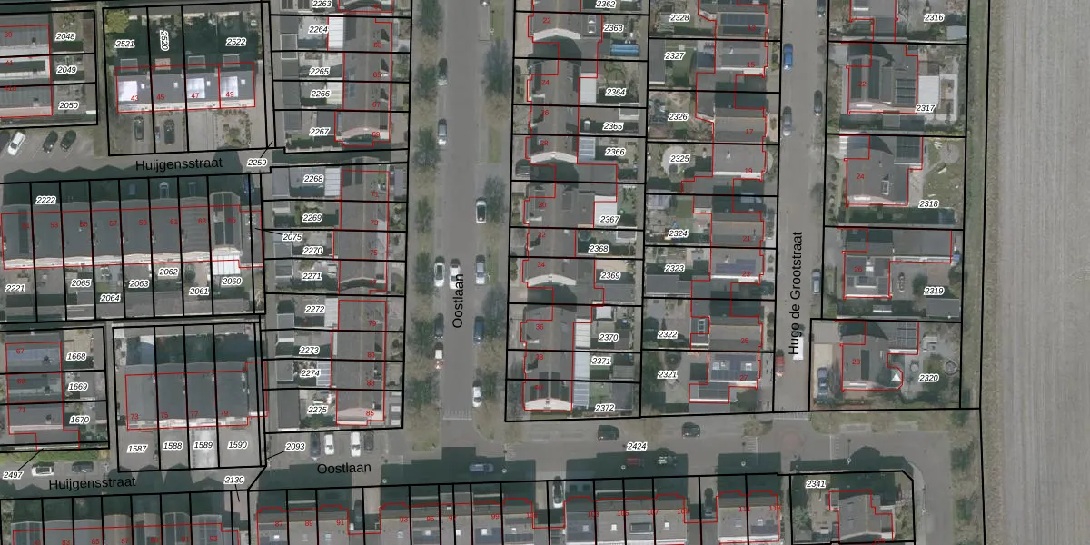 Het perceel waarop Oostlaan 34 staat heeft een oppervlakte van 211 m². Dit is een middelgroot perceel. De perceeloppervlakte wordt geregistreerd door het Kadaster. Gedetailleerde informatie over de maten van dit perceel kunt u vinden in het rapport Kadastrale kaart met maatvoering van Oostlaan 34.