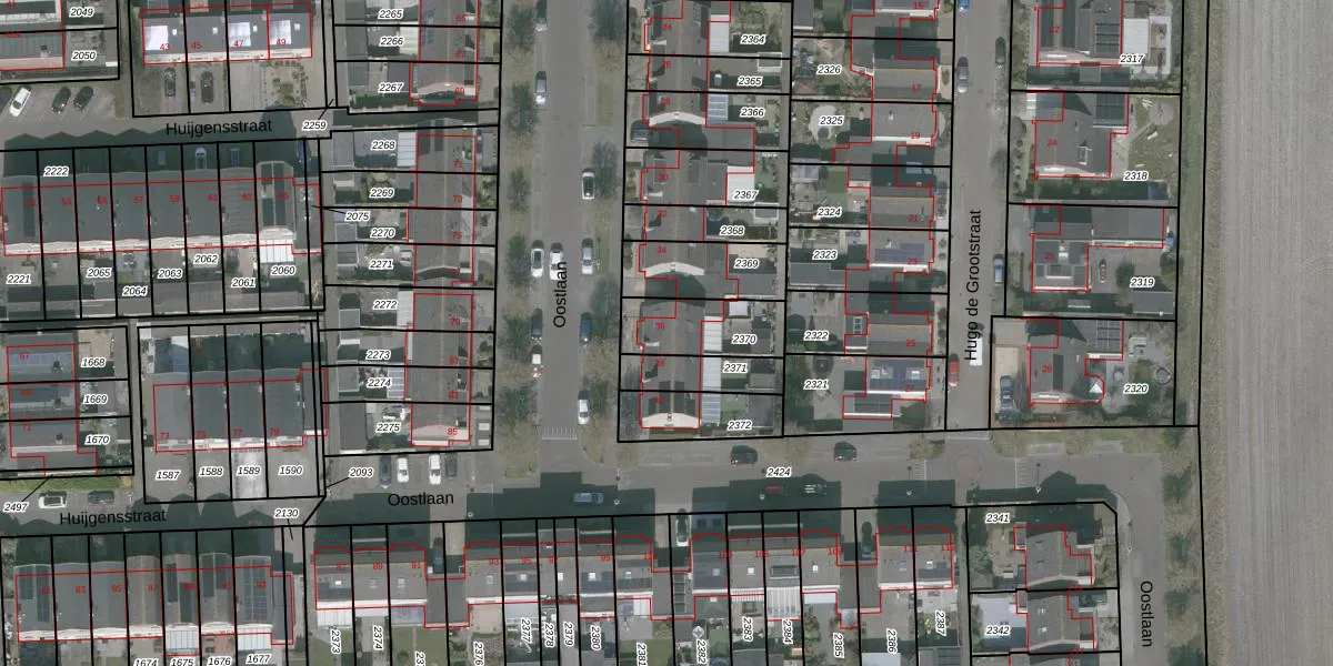 Het perceel waarop Oostlaan 36 staat heeft een oppervlakte van 211 m². Dit is een middelgroot perceel. De perceeloppervlakte wordt geregistreerd door het Kadaster. Gedetailleerde informatie over de maten van dit perceel kunt u vinden in het rapport Kadastrale kaart met maatvoering van Oostlaan 36.