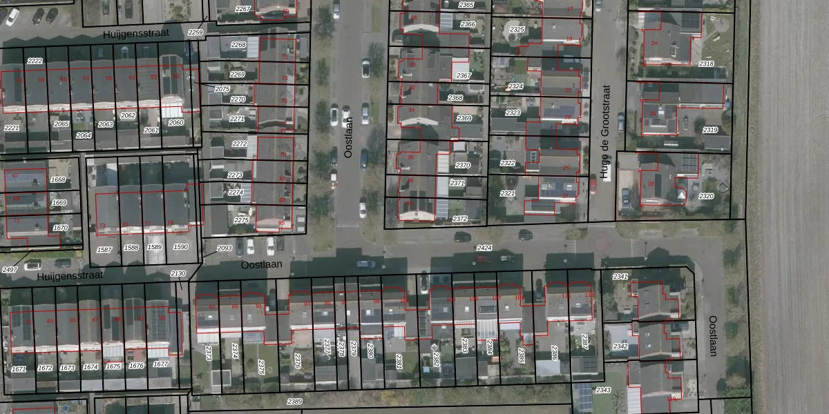 Het perceel waarop Oostlaan 40 staat heeft een oppervlakte van 176 m². Dit is een middelgroot perceel. De perceeloppervlakte wordt geregistreerd door het Kadaster. Gedetailleerde informatie over de maten van dit perceel kunt u vinden in het rapport Kadastrale kaart met maatvoering van Oostlaan 40.