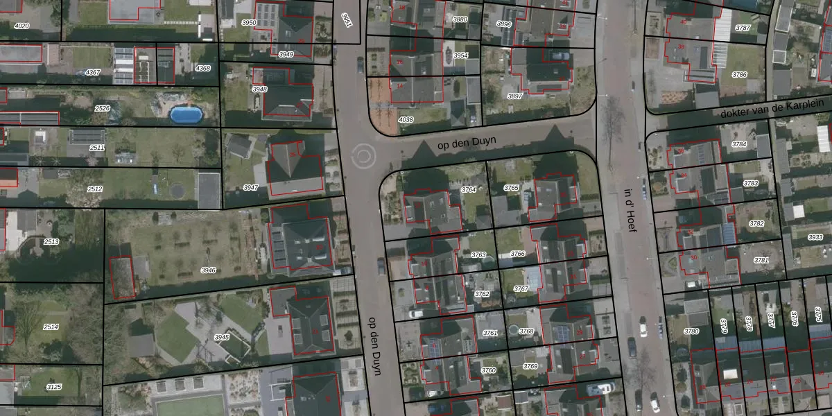 Gebruik de zoekbalk of klik op een perceel voor informatie over de adressen binnen dit perceel.