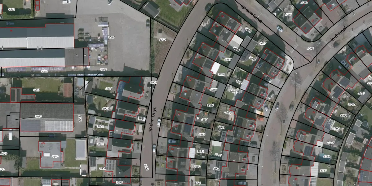 Het perceel waarop op den Duyn 26 staat heeft een oppervlakte van 257 m². Dit is een middelgroot perceel. De perceeloppervlakte wordt geregistreerd door het Kadaster. Gedetailleerde informatie over de maten van dit perceel kunt u vinden in het rapport Kadastrale kaart met maatvoering van op den Duyn 26.