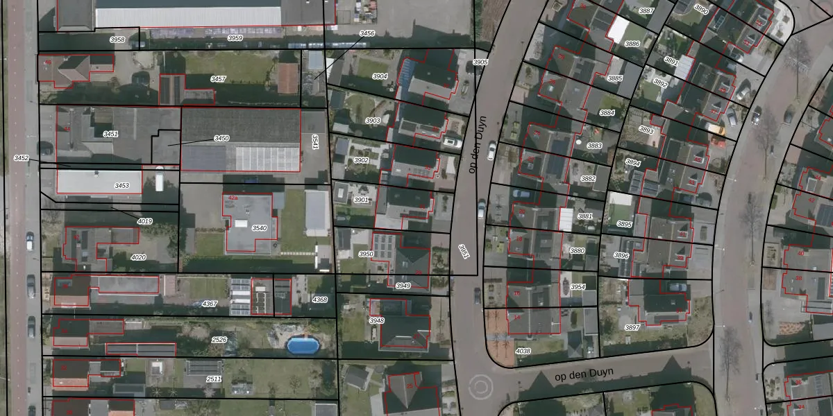 Gebruik de zoekbalk of klik op een perceel voor informatie over de adressen binnen dit perceel.