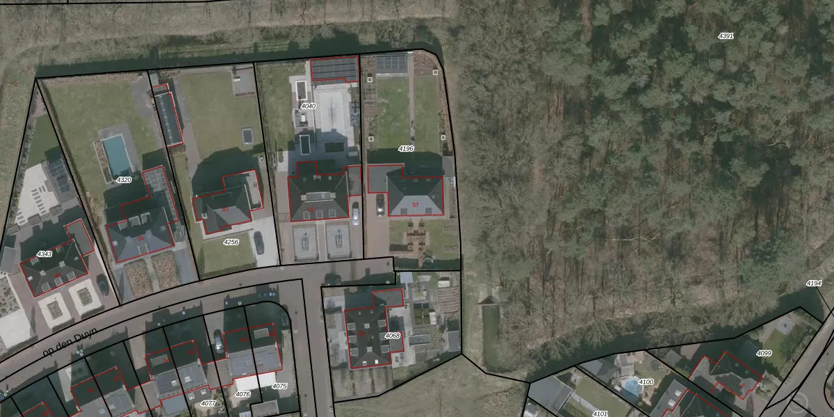 op den Duyn 57 is gelegen op kadastraal perceel WDT00B4196. Deze kadastrale aanduiding is uniek en wordt gebruikt door het Kadaster om eigendomsrechten en andere zakelijke rechten vast te leggen. Het perceel maakt onderdeel uit van de kadastrale gemeente Woensdrecht.