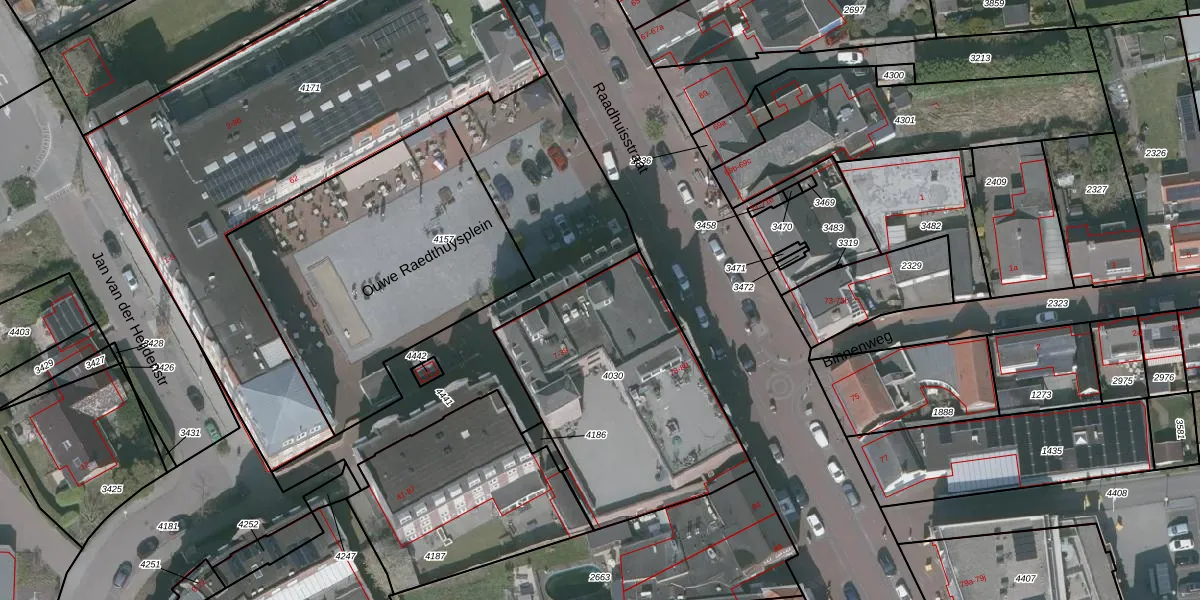 Ouwe Raedthuysplein 15 is gelegen op kadastraal perceel WDT00B4030. Deze kadastrale aanduiding is uniek en wordt gebruikt door het Kadaster om eigendomsrechten en andere zakelijke rechten vast te leggen. Het perceel maakt onderdeel uit van de kadastrale gemeente Woensdrecht.