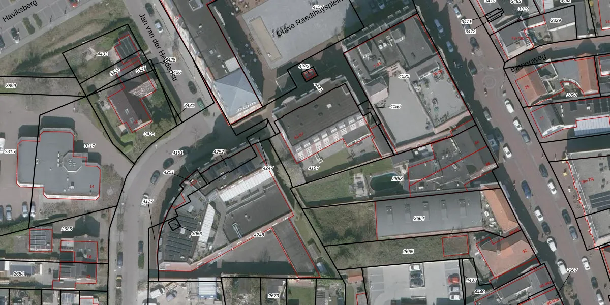 Het perceel waarop Ouwe Raedthuysplein 81 staat heeft een oppervlakte van 775 m². Dit is een groot perceel. De perceeloppervlakte wordt geregistreerd door het Kadaster. Gedetailleerde informatie over de maten van dit perceel kunt u vinden in het rapport Kadastrale kaart met maatvoering van Ouwe Raedthuysplein 81.