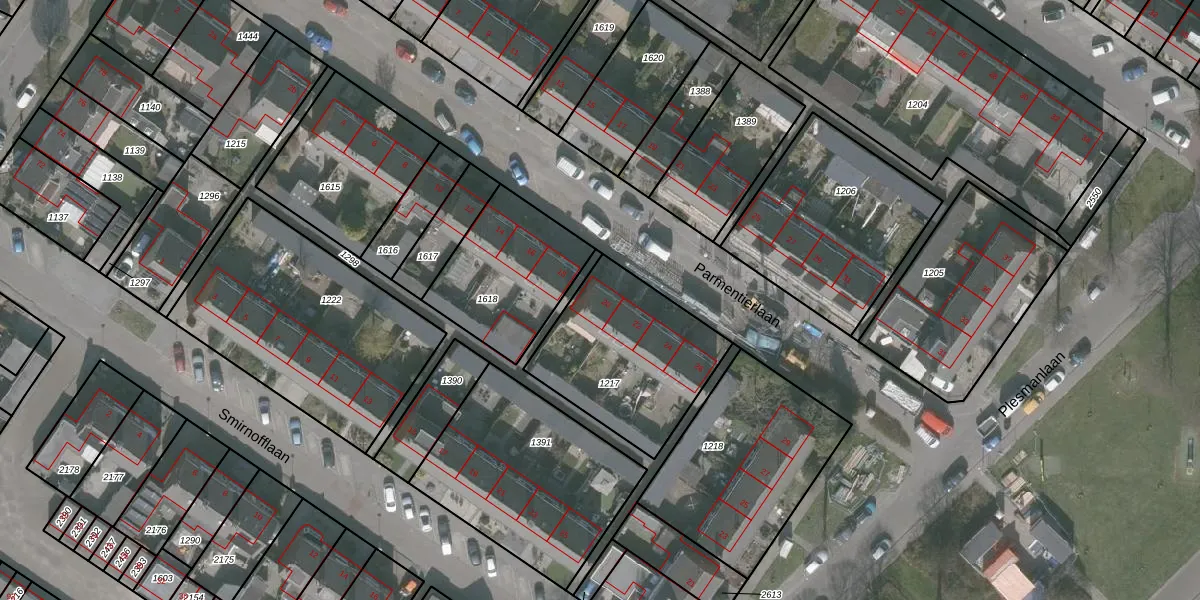 Het perceel waarop Parmentierlaan 20 staat heeft een oppervlakte van 614 m². Dit is een groot perceel. De perceeloppervlakte wordt geregistreerd door het Kadaster. Gedetailleerde informatie over de maten van dit perceel kunt u vinden in het rapport Kadastrale kaart met maatvoering van Parmentierlaan 20.