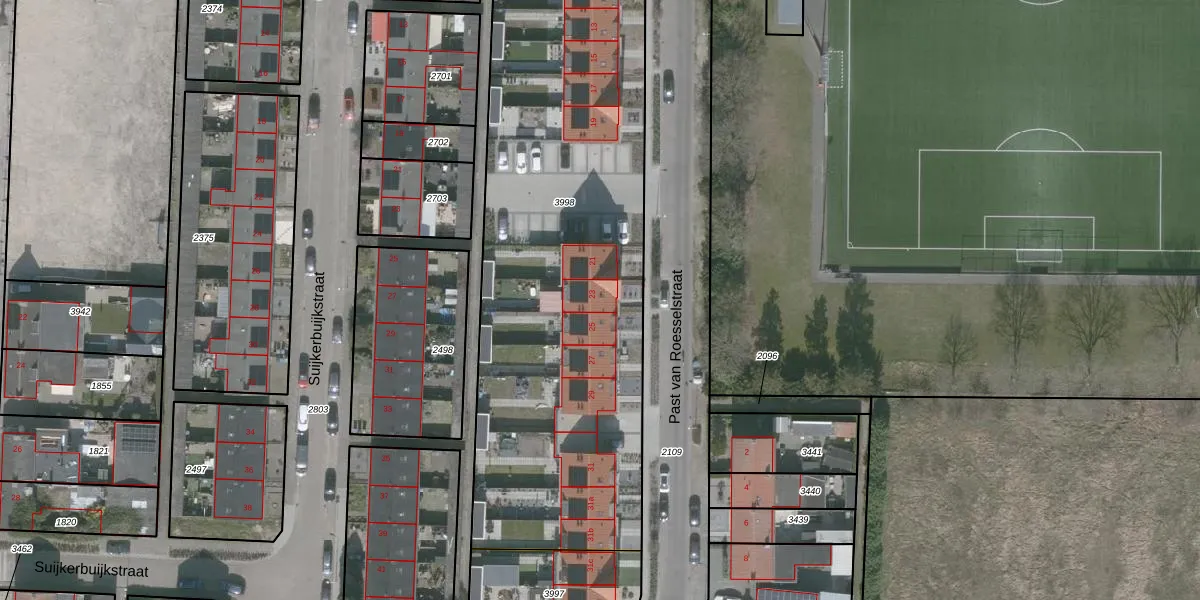 Het perceel waarop Past van Roesselstraat 23 staat heeft een oppervlakte van 3123 m². Dit is een zeer groot perceel. De perceeloppervlakte wordt geregistreerd door het Kadaster. Gedetailleerde informatie over de maten van dit perceel kunt u vinden in het rapport Kadastrale kaart met maatvoering van Past van Roesselstraat 23.