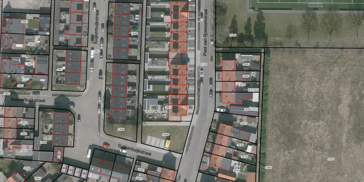 Het perceel waarop Past van Roesselstraat 31-b staat heeft een oppervlakte van 3123 m². Dit is een zeer groot perceel. De perceeloppervlakte wordt geregistreerd door het Kadaster. Gedetailleerde informatie over de maten van dit perceel kunt u vinden in het rapport Kadastrale kaart met maatvoering van Past van Roesselstraat 31-b.