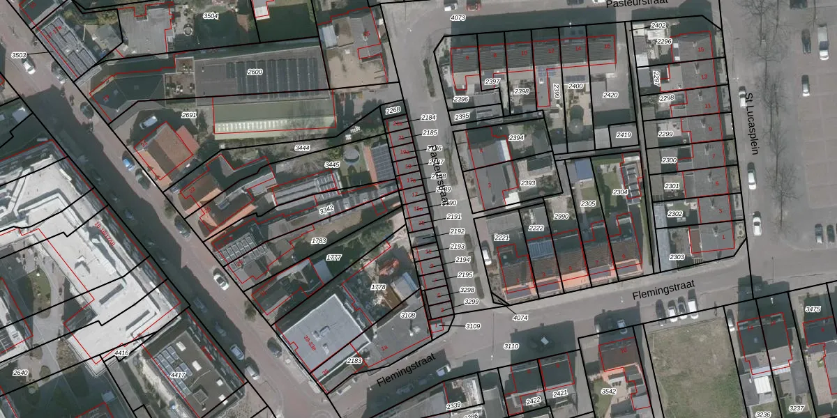Gebruik de zoekbalk of klik op een perceel voor informatie over de adressen binnen dit perceel.