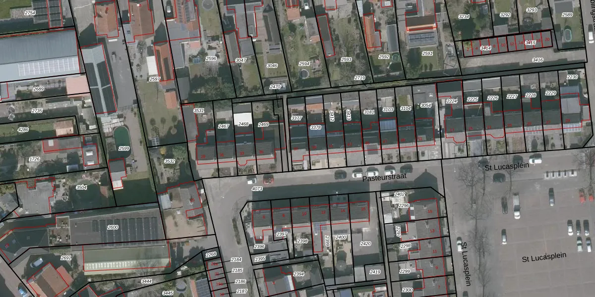 Gebruik de zoekbalk of klik op een perceel voor informatie over de adressen binnen dit perceel.