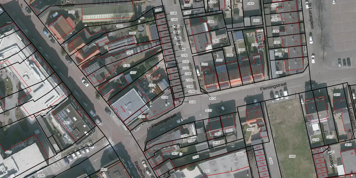 Gebruik de zoekbalk of klik op een perceel voor informatie over de adressen binnen dit perceel.